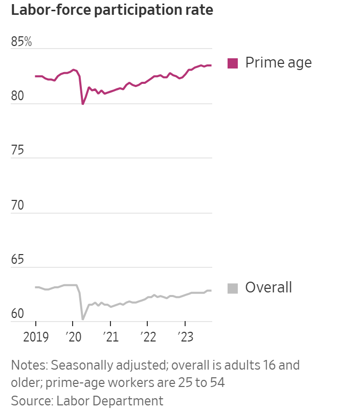 노동 시장이 강세를 보이면서 사람들이 더 높은 임금과 복리후생에 대한 기대감에 부업에서 벗어나 일자리를 찾고 있습니다. 일하거나 구직 중인 노동 연령 인구의 비율이 증가하여 최근 20여 년 만에 최고치를 기록했습니다.