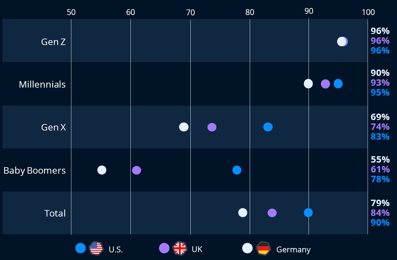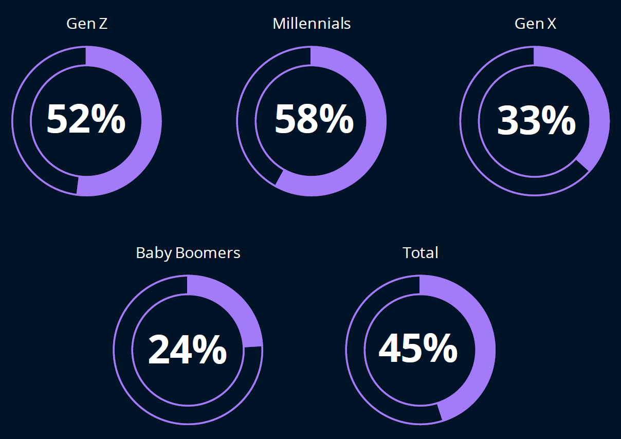 생활비 위기는 세대별로 미국 소비자 지출에 다양한 영향을 미치고 있습니다. 베이비붐 세대는 가장 부유한 세대임에도 불구하고 그 영향을 심각하게 느끼고 있습니다. 베이비붐 세대의 과반수(60%)는 더욱 검소한 소비를 하고 가성비를 우선시하면서 소비 습관에 눈에 띄는 변화가 생겼다고 답했습니다.