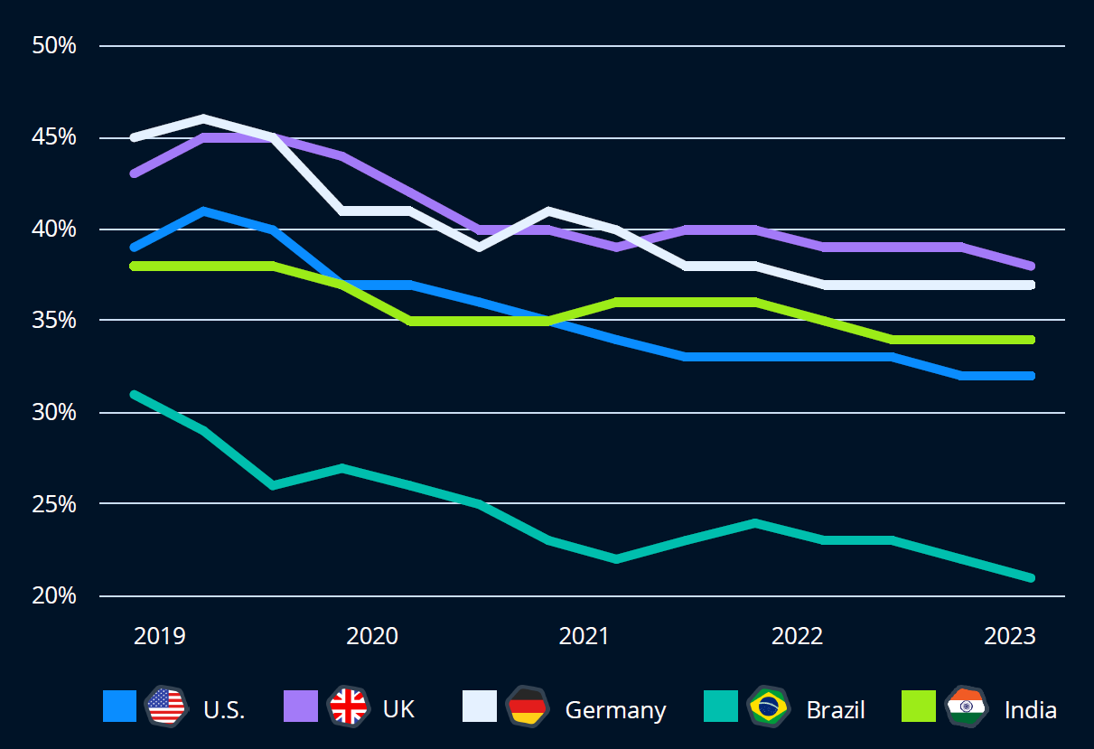 미국 소비자들은 기업이 자신의 데이터를 사용하여 초개인화된 광고를 제공하는 것에 대해 개방적인 태도를 보였으며, 이를 성가시게 생각한다는 응답은 약 30%에 불과했습니다. 맞춤형 추천과 원활한 쇼핑 경험 등 이러한 접근 방식의 이점이 소비자들의 마음을 사로잡은 것으로 보입니다.