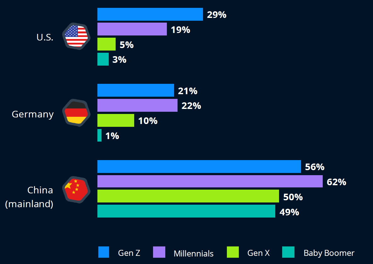 Z세대는 상대적으로 자산이 적기 때문에 자동차나 부동산과 같은 큰 생활비 지출을 감당할 수 없는 경우가 많아 영향을 덜 받는 것으로 보입니다. 일부는 여전히 부모님과 함께 살고 있으며, 부모님은 더 많은 지출을 부담하고 있습니다. 이러한 구조 덕분에 Z세대는 더 적은 재량 지출 항목에 더 많은 자원을 할당할 수 있습니다. 따라서 다른 세대에 비해 위기가 일상 생활에 미치는 영향을 아직 경험하지 못했습니다.