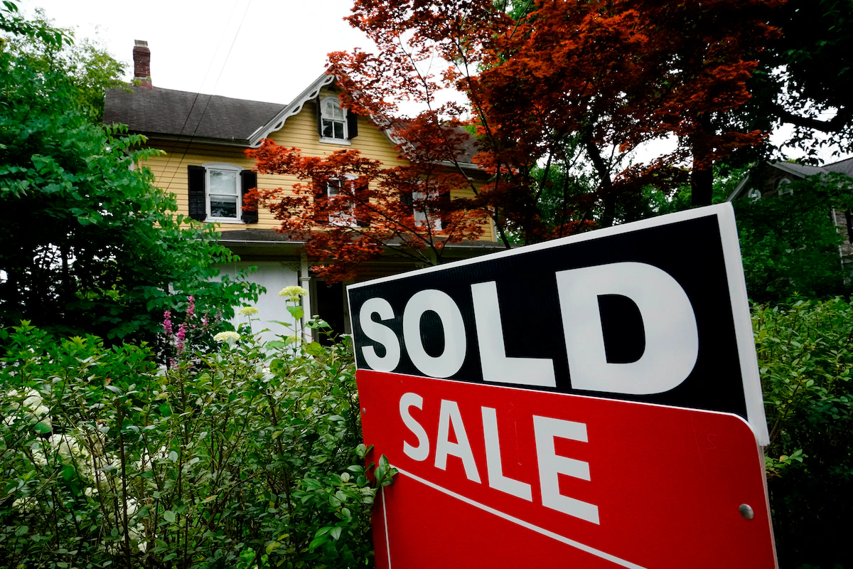 2022년 6월 펜실베이니아주 윈드무어에 위치한 주택의 분양을 알리는 표지판. 주택 시장은 모기지 금리가 상승하더라도 여전히 매우 타이트합니다. (매트 루크/AP)