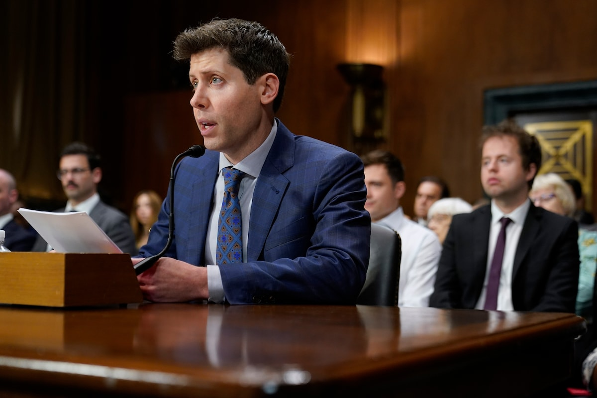 2023년 5월, 당시 OpenAI의 CEO였던 샘 알트먼이 인공지능에 관한 상원 사법위원회 소위원회 청문회에서 연설하고 있다. (패트릭 세만스키/AP)