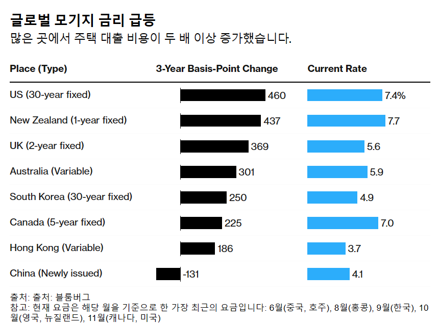 5. bloomberg.com 높은 이자율로 인해 전 세계의 내 집 마련 꿈이 깨지고 있습니다.
