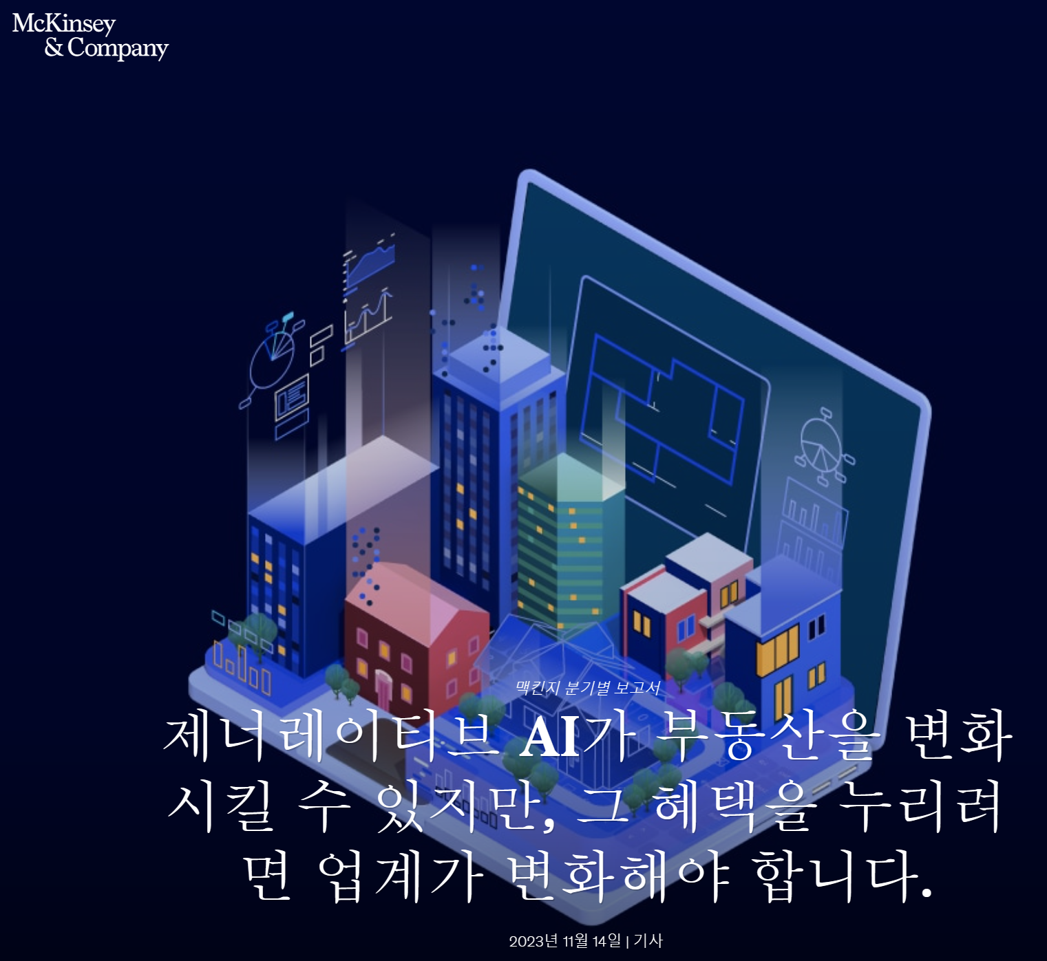 "맥킨지 분기별 보고서: 제너레이티브 AI가 부동산을 변화시킬 수 있지만, 그 혜택을 누리려면 업계가 변화해야 합니다. 2023년 11월 14일" 를 먼저 해석하여 소개합니다.