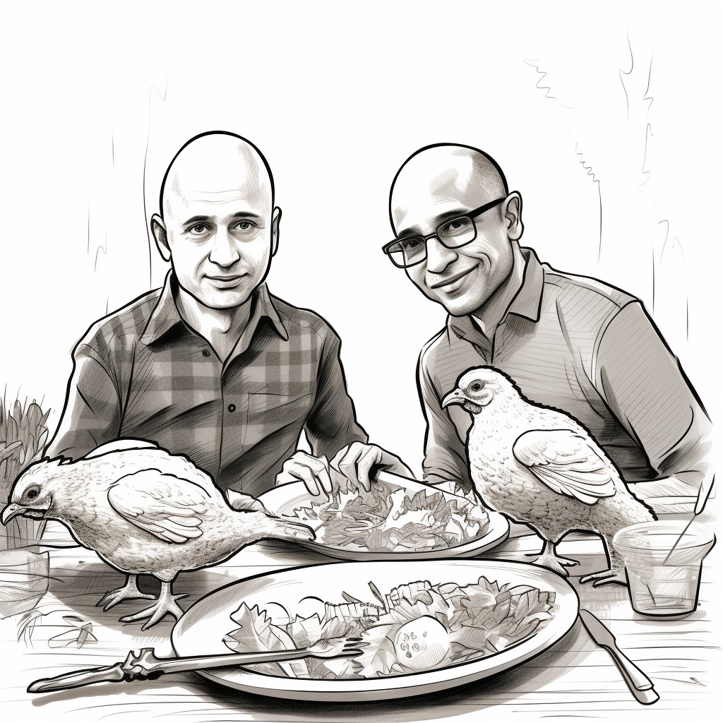 미드저니[ Midjourney ]로 그린  '부활절 칠면조 고기를 먹는 사티아 나델라와 샘 알트만'