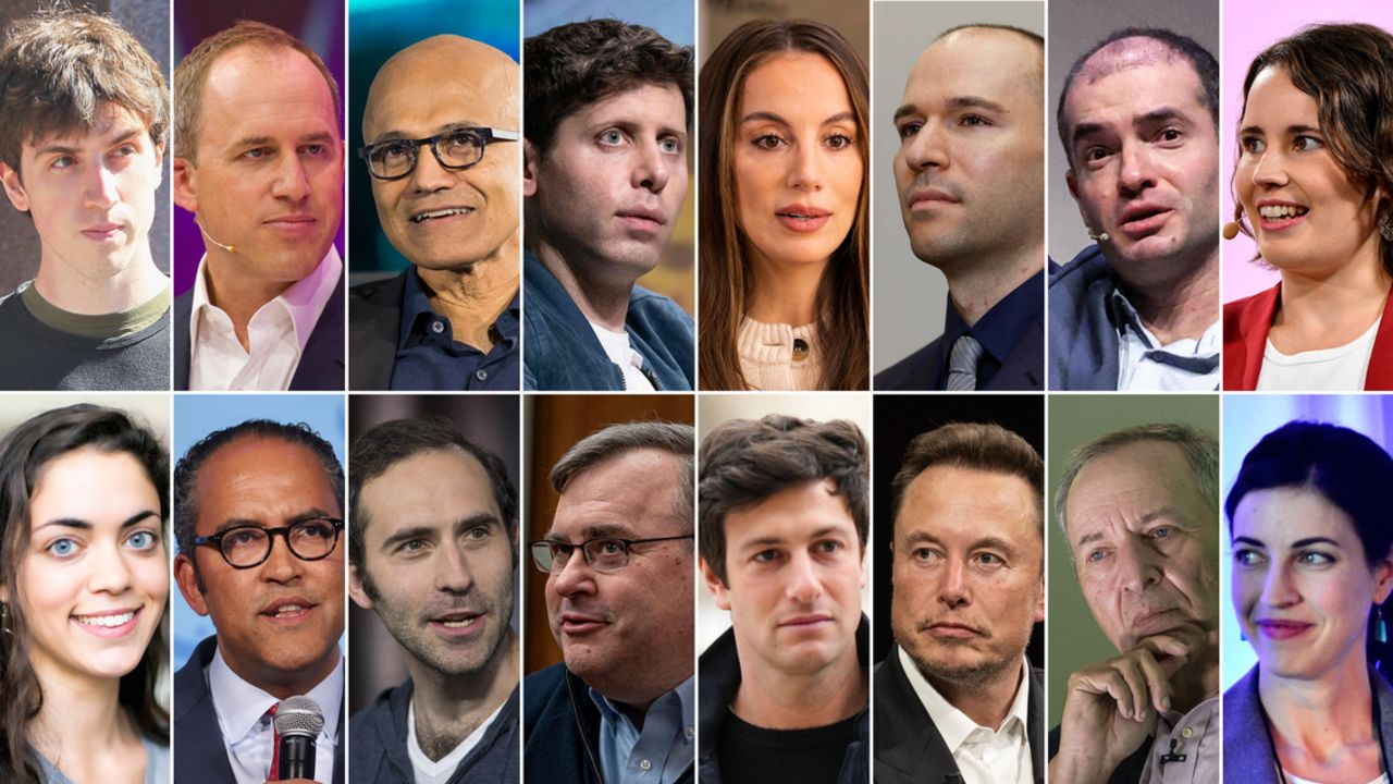 왼쪽에서 오른쪽, 시계 방향: 아담 디안젤로, 브렛 테일러, 사티아 나델라, 샘 알트만, 미라 무라티, 그렉 브록맨, 일리아 수츠케버, 헬렌 토너, 타샤 맥컬리, 래리 서머스, 엘론 머스크, 조쉬 쿠슈너, 리드 호프만, 에멧 시어, 윌 허드, 시본 질리스.  Bloomberg/AFP/Getty Images/shivonzilis