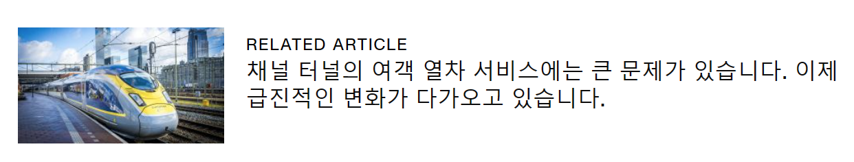 - Heuro: 네덜란드의 창업가들이 만든 새로운 스타트업으로, 2028년부터 유로스타와 직접 경쟁할 계획이다. 런던과 파리로 하루 최대 15회, 16회의 열차를 운행할 예정이다. 티켓 가격은 유로스타보다 저렴할 것이다.