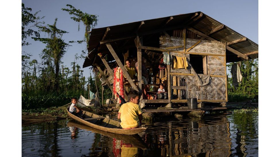 습지 지역에서는 12월부터 3월까지 계절에 따라 비가 내리면 수위가 높아지기 때문에 홍수가 발생하는 것은 연례행사입니다. 건기에는 물이 줄어듭니다. 이러한 극심한 변동에 적응하기 위해 이 지역 주민들은 전통적으로 대나무와 발사 나무로 만든 뗏목 같은 플랫폼 위에 1~2층짜리 집을 짓습니다. 나무는 자연적인 공기 주머니 덕분에 떠 있습니다. 플랫폼은 홍수로 가득 찬 호수와 늪 한가운데서 물에 잠긴 채 자라는 습지 토종 나무인 방칼 나무에 감긴 튼튼한 밧줄과 덩굴을 이용해 고정됩니다.