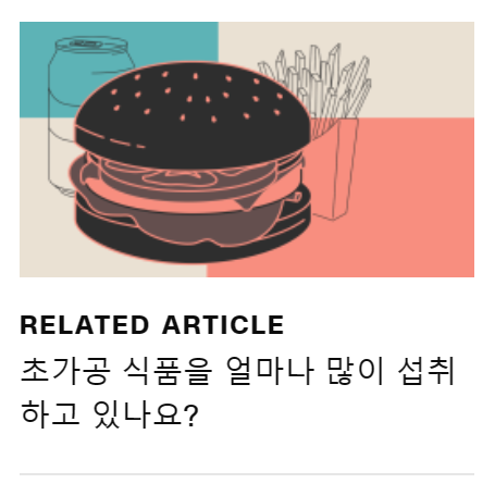 - 초가공 식품의 식단 비율: 미국의 식품 공급량의 71%가 초가공 식품으로 구성되어 있습니다. CNN은 인기 있는 패스트푸드와 점심 카페의 메뉴 항목을 분석하여 초가공 식품의 비율을 알려주는 도구를 제공합니다. 이 도구를 사용하면 자신의 점심 선택이 얼마나 초가공 식품을 포함하는지 알 수 있습니다.