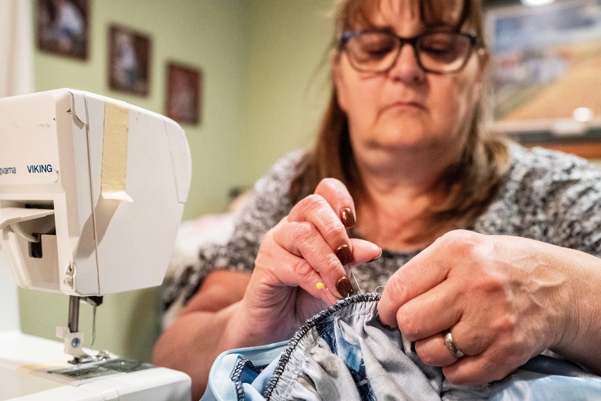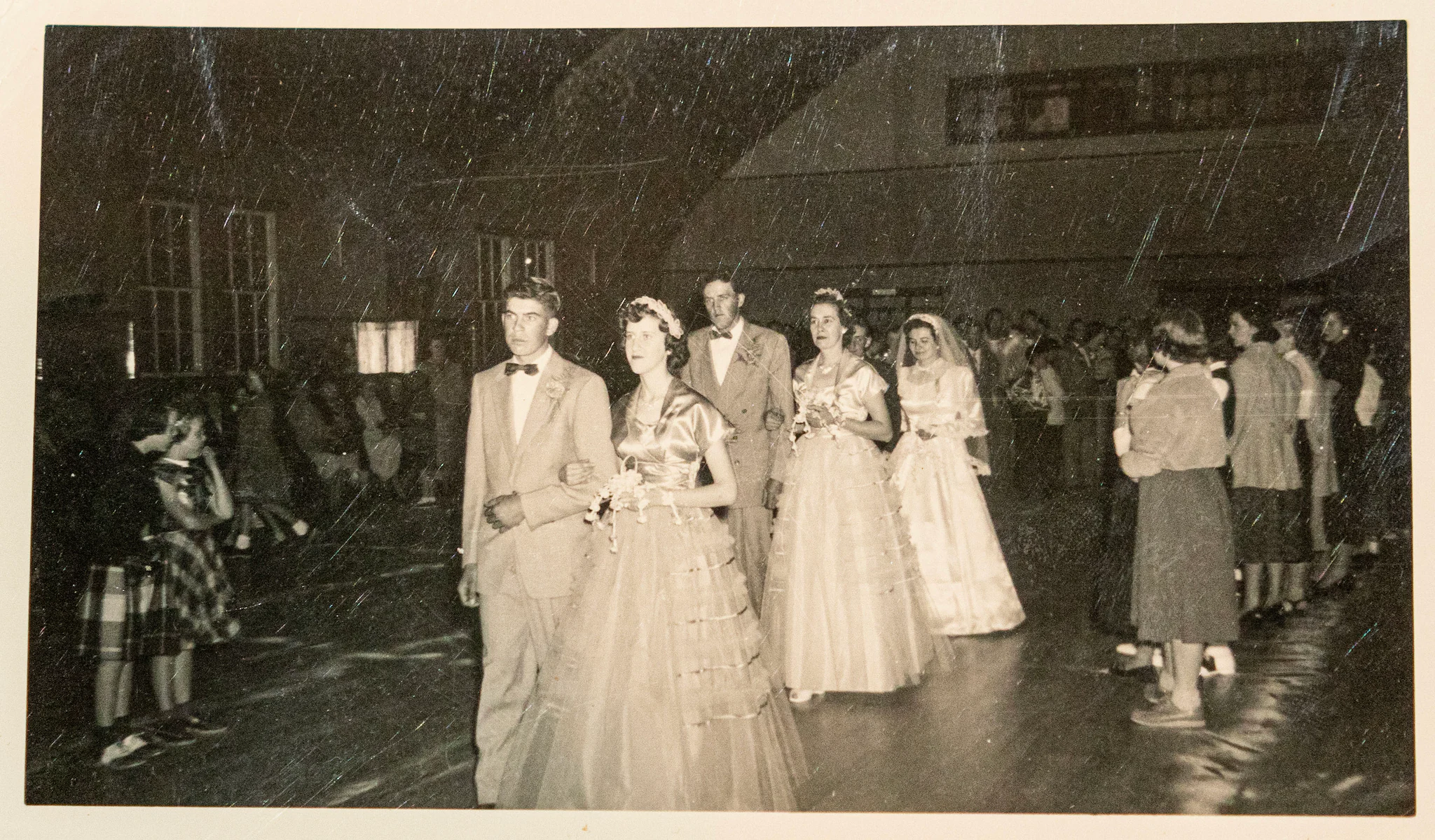옥수수 줄기가 마르고 여름이 지나 2023년 가을로 접어들 무렵, 한 가지 프로젝트가 떠올랐습니다: 4일 후, 베르나는 수십 년 전 부모님이 결혼식 피로연을 열었던 지역 연회장에서 대가족 상봉 행사를 주최하게 되었습니다. 마침 그 날은 부모님의 기일이기도 했고, 베르나는 당시의 사진을 꼼꼼히 살펴보고 있었습니다. 어머니의 드레스는 다른 가족 가보와 함께 전시될 예정이었습니다.