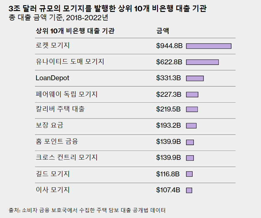 • 비은행 대출사의 수수료 : Bloomberg News의 분석에 따르면, 비은행 대출사를 통해 주택담보대출을 받은 미국인들은 전통 은행을 통해 대출받은 사람들보다 평균적으로 더 많은 수수료를 지불했다. 특히 흑인이나 라틴계 미국인들은 백인이나 아시아계 미국인들보다 더 큰 차별을 받았다.