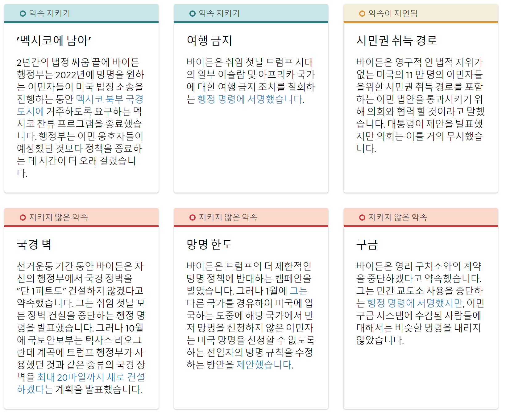 조 바이든이 지킨 선거 공약과 어긴 공약들
