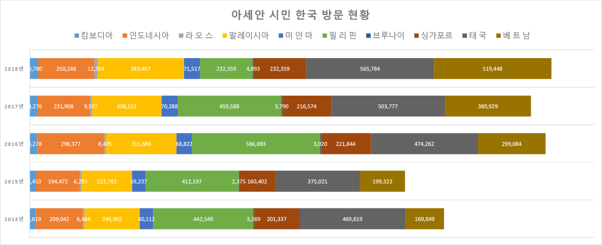 - 사회·문화: 한국과 아세안은 인적 교류와 문화 교류를 활성화하고 있습니다. 한국은 아세안 국가의 비자 절차를 간소화하고, 전자 비자 제도를 도입하였으며, 아세안 국가의 학생, 교수, 전문가 등에게 복수 비자를 우대적으로 발급하고 있습니다. 한국은 아세안 국가의 청년, 여성, 장애인 등의 사회적 약자를 위한 교육과 연수 프로그램을 지원하고 있으며, 한류와 한국문화를 널리 알리기 위해 한국문화원, 한국어교육원, 한류축제 등을 운영하고 있습니다.