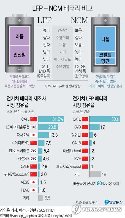 - LFP 배터리는 NMC 배터리보다 에너지 밀도가 낮지만, 안정성과 수명이 더 높습니다.