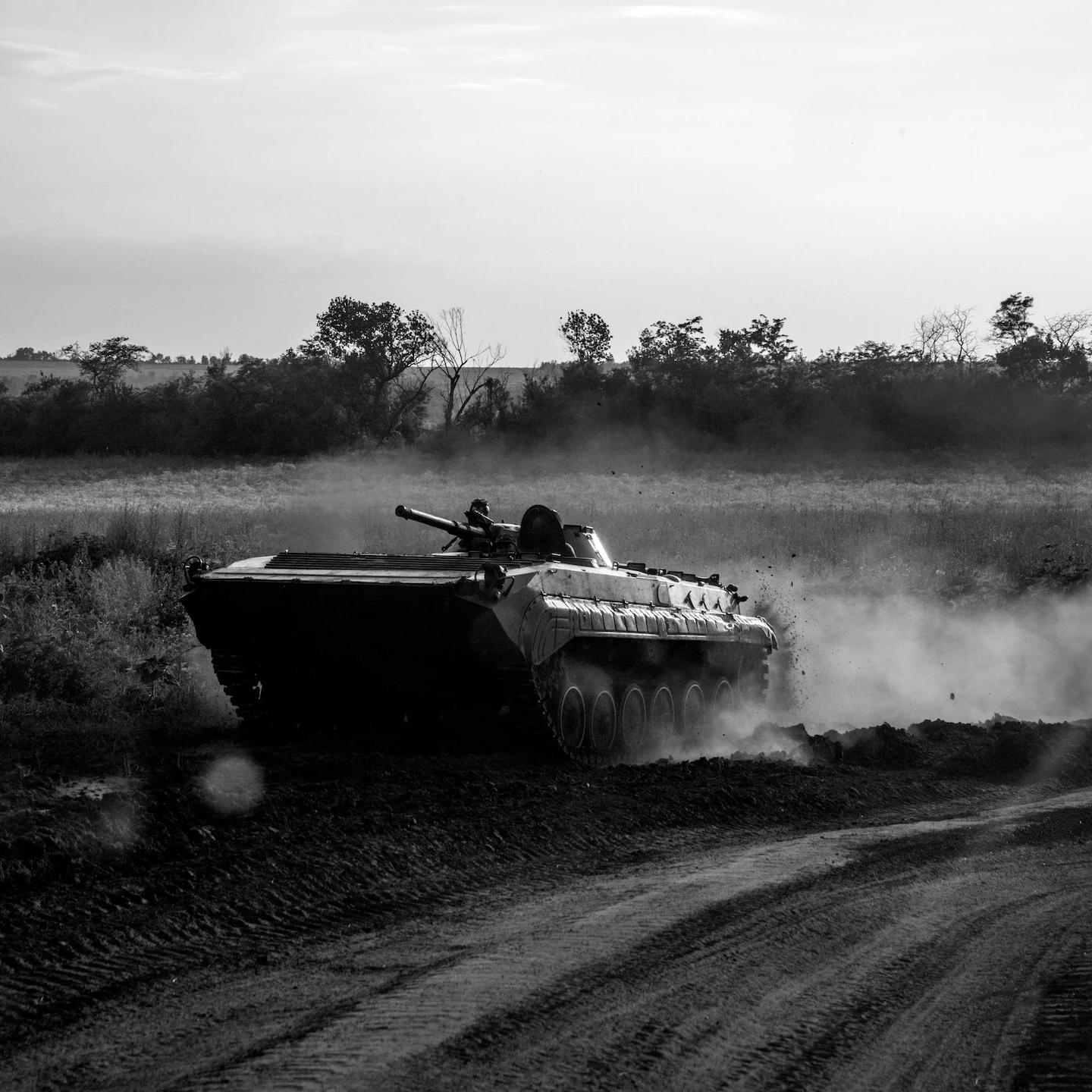 7월 5일 우크라이나 도네츠크주의 한 기지에서 장갑차가 선로를 따라 이동하고 있다. (워싱턴 포스트의 에드 램)