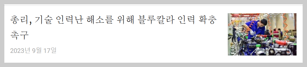 - 중국 총리 리커앙, 숙련된 청색 칼라 인력 양성 촉구: 고부가가치 제조업으로의 전환을 위해 필요한 숙련된 기술자들의 부족 문제를 해결하기 위해, 리커앙 총리는 직업 교육의 발전과 임금 수준의 개선을 강조했다.