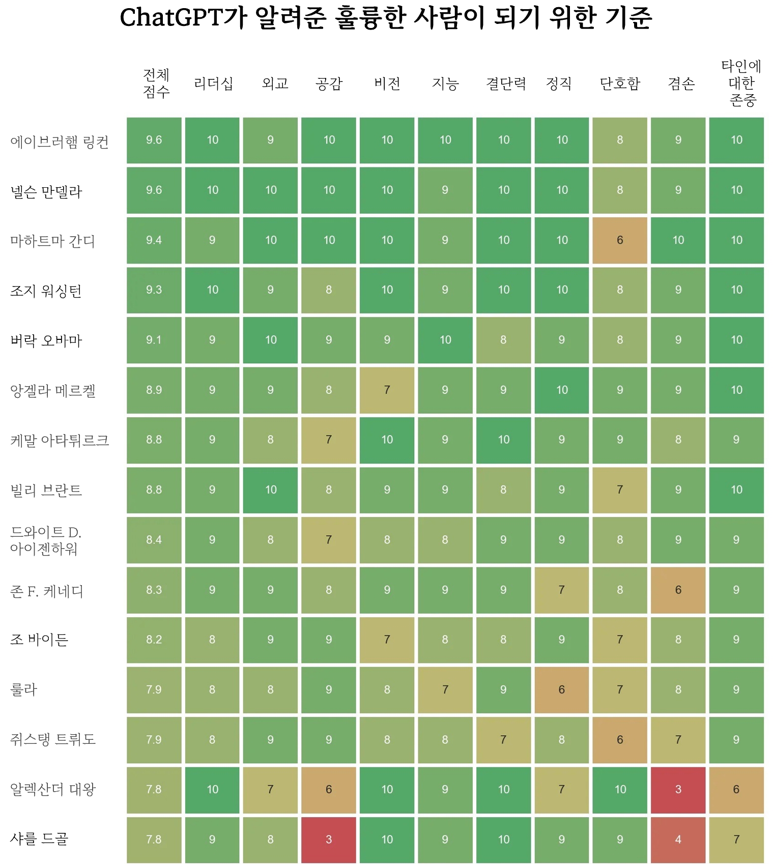 | ChatGPT가 알려준 훌륭한 사람이 되기 위한 기준(2) (0) | 2023.03.15 |