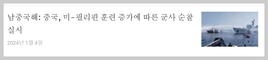 - 남중국해의 분쟁: 중국과 필리핀이 분쟁 해역에서 서로 충돌하고 미국이 필리핀의 동맹국으로서의 역할을 강화하면서 지역 안보가 위협받고 있습니다. 중국은 필리핀에 대한 압박을 강화하고 영유권을 수호하기 위해 해안 경비대의 역할을 강화했습니다.