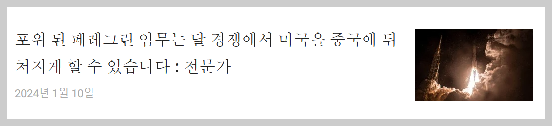 - 중국과의 달 경쟁: 중국은 최근 몇 년 동안 여러 차례 성공적인 달 착륙을 수행했으며, 올해는 달의 뒷면에서 암석 샘플을 가져오는 창업-6 미션을 예정하고 있다. 이는 미국보다 앞서 나가는 것으로 보인다.