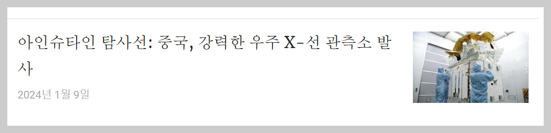 - 아인슈타인 프로브: 중국이 새로운 세대의 X선 관측소를 발사하여 밤하늘의 번쩍임을 모니터링하고 중성자 별 충돌이나 블랙홀이 동반성을 삼키는 등의 격렬한 우주 사건에 대한 이해를 돕는다.