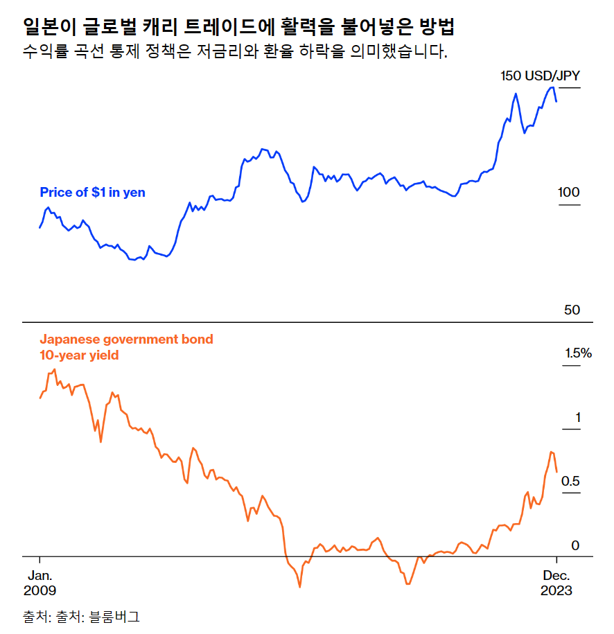 일본 중앙은행은 위축된 일본 경제를 부양하기 위해 2024년에 수익률 곡선 통제 정책을 포기할 예정입니다. 이러한 움직임은 글로벌 캐리 트레이드에 영향을 미쳤는데, 투자자들은 제로 코스트로 엔화를 빌려 미국 국채나 신흥국 채권을 매입할 수 있습니다. 블룸버그 이코노믹스는 원활한 운영을 위해 신중한 시장 신호와 함께 7월에 출구전략을 시행할 것으로 예상하고 있습니다.