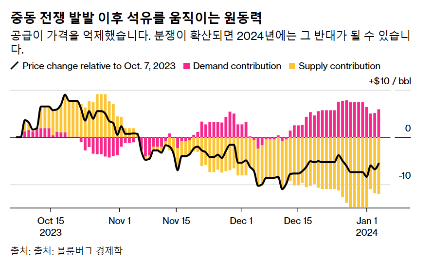 3개월 이상 지속된 이스라엘의 가자지구 전쟁으로 인해 이 지역은 석유 공급을 차단하고, 글로벌 성장의 발목을 잡고, 인플레이션을 다시 상승시킬 수 있는 더 큰 분쟁의 위기에 처해 있습니다. 아직 그런 종류의 에너지 공급 중단은 일어나지 않았고, 시장에서는 그런 일이 일어나지 않을 것이라고 예상하고 있습니다. 하지만 위험은 커지고 있습니다.