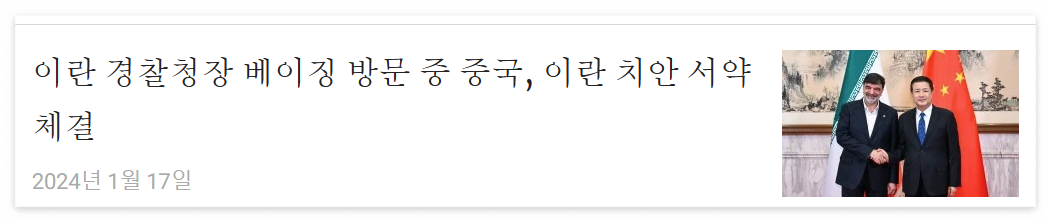 중국, 이란 경찰청장 베이징 방문 중 치안 협력 서약 체결