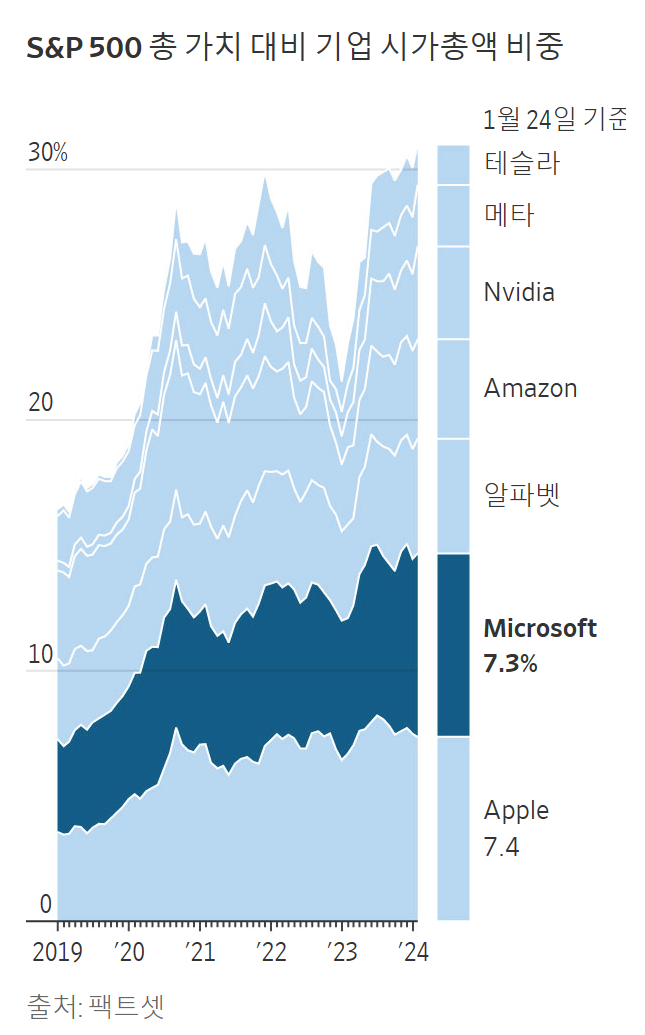 Microsoft와 Apple과 같은 동종 기업의 규모가 크다는 것은 기술주가 전체 주식 시장의 실적에서 큰 역할을 한다는 것을 의미합니다. 올해가 시작되었을 때, 이 두 기술 기업은 시장 가치 가중치 S&P 500에서 14%를 차지했습니다. 다우존스 마켓 데이터에 따르면, 마이크로소프트와 애플은 현재 S&P 500에 속한 11개 섹터 중 5개 섹터의 가치를 능가하고 있습니다.