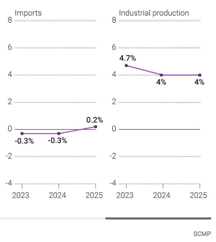 - 수입: 수입은 2023년부터 2025년까지 **-0.3%**로 일정하게 유지될 것으로 예측됩니다. 이는 중국의 내수 시장이 둔화하고, 원자재 가격이 하락하고, 수입 대체 정책이 진행될 것이라는 전망에 기반합니다.