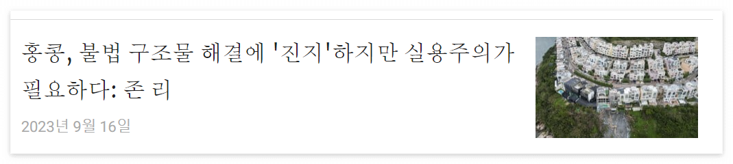 - 불법 구조물 처벌 강화 계획: 홍콩 정부는 불법 구조물을 가진 주택 소유주에 대한 기소 임계값을 낮추고 벌금을 높이는 방안을 내년에 검토할 예정이다.