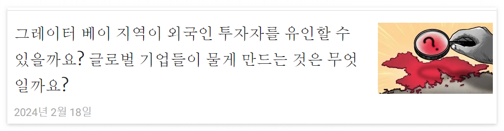 - 자본 유입: 베이징이 5년 전 발표한 대만양 지역을 2035년까지 고기술 강국으로 만들겠다는 청사진 이후, 홍콩, 마카오, 광동 9개 도시로 구성된 대만양 지역에 자본이 유입되고 있다.
