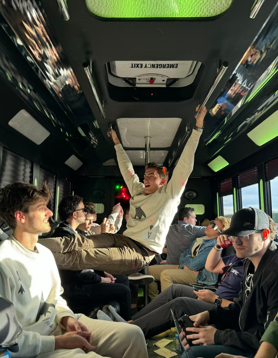 기술 스타트업 그룹은 엘 세군도에서 파티 버스를 타고 농장으로 이동한 후 안두릴과 벤처 캐피털 회사 안드레센 호로위츠가 주최한 국방 기술 파티에 참석했습니다. (이사야 테일러)