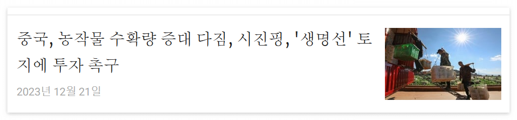 - 곡물 생산 유지: 중국은 2015년 이후 지속적으로 달성해온 연간 650백만 톤 이상의 곡물 생산량을 유지하려고 합니다.