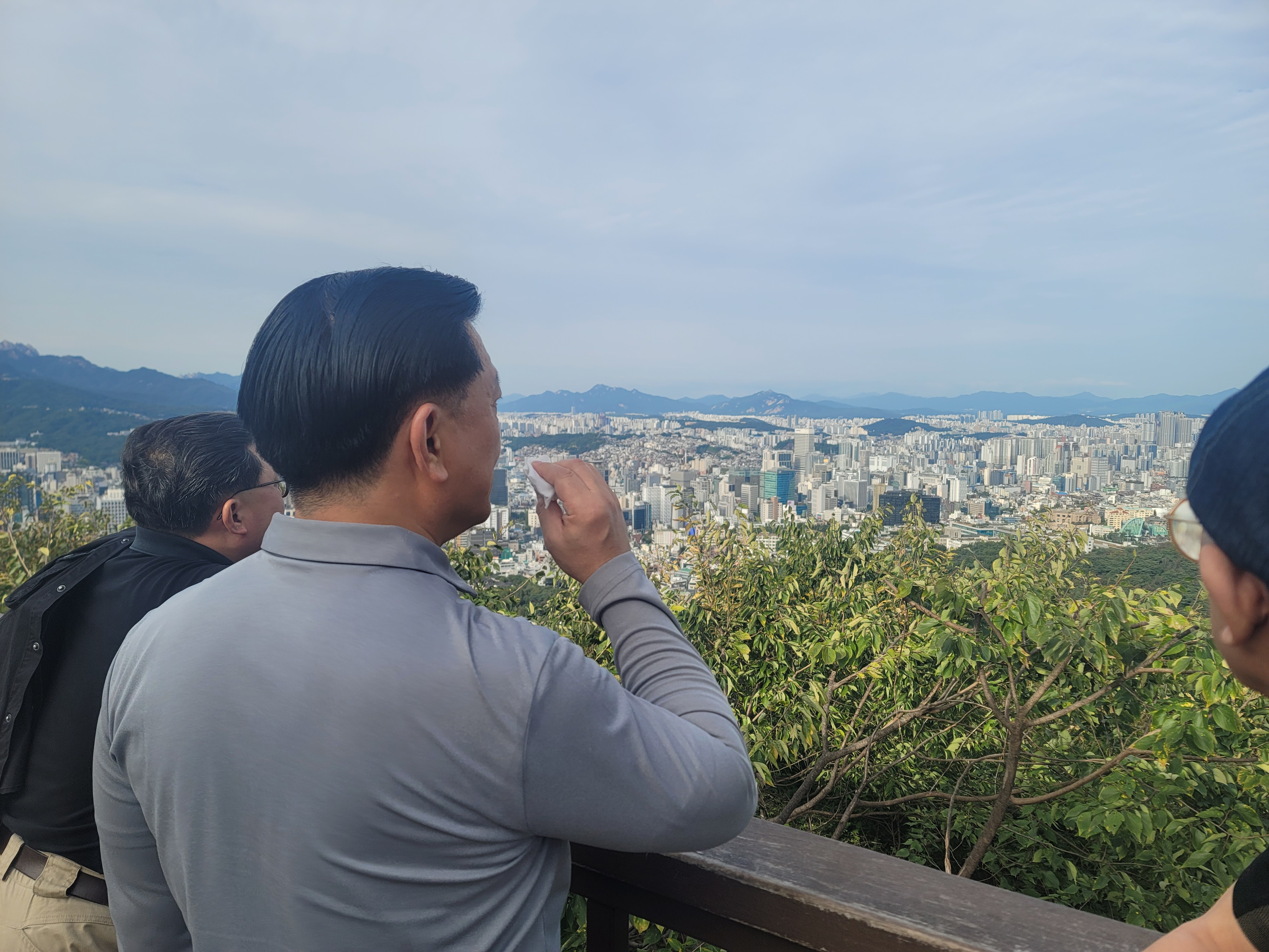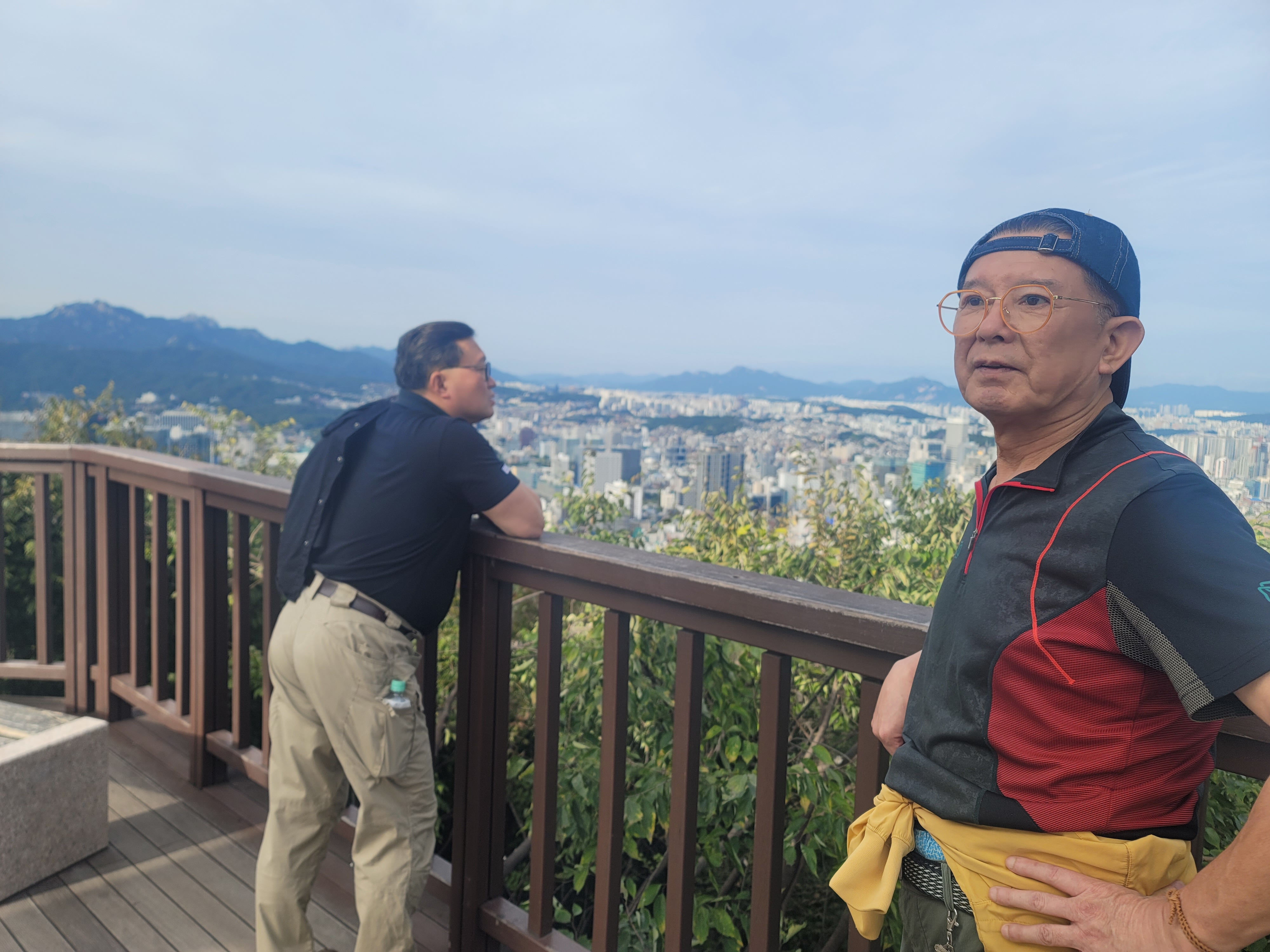 먼저 어린이 회관을 돌아 서울타워로 오르고 국립극장을 거쳐 충무로에서 나가는 코스를 걷기 시작했습니다. 걷다 보니 2명씩 조를 나누어 걷게 되었습니다. 아침부터 걷던 분들이 1차, 발가락이 아프신 분과 함께 2차, 골반이 불편한 분과 3차로 거리가 벌어지기 시작했습니다. 각자의 페이스대로 걷는 모습이 좋았습니다. 2차, 3차로 걷던 분들은 서울타워에서 만나 잠시 휴식을 취하기 때문에 사진도 찍을 수 있었습니다.