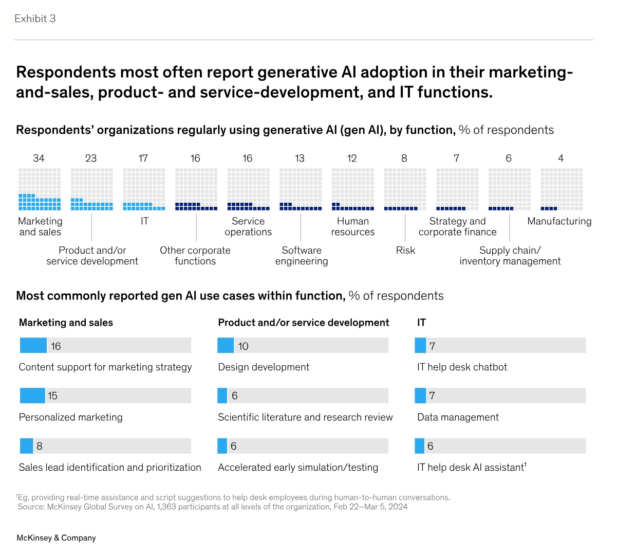출처: The state of AI in early 2024: Gen AI adoption spikes and starts to generate value | McKinsey