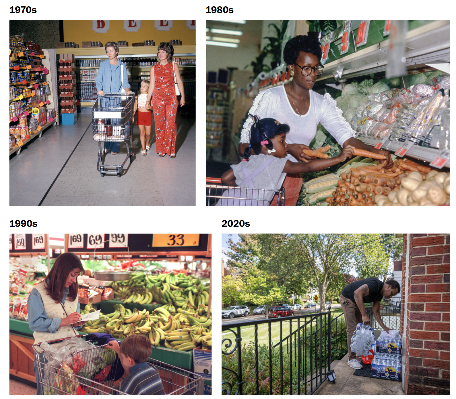 -1970년에는 과일과 채소에 대한 식료품 지출 비율은 12%였습니다. 이 비율은 2020년에는 22%로 증가했습니다.