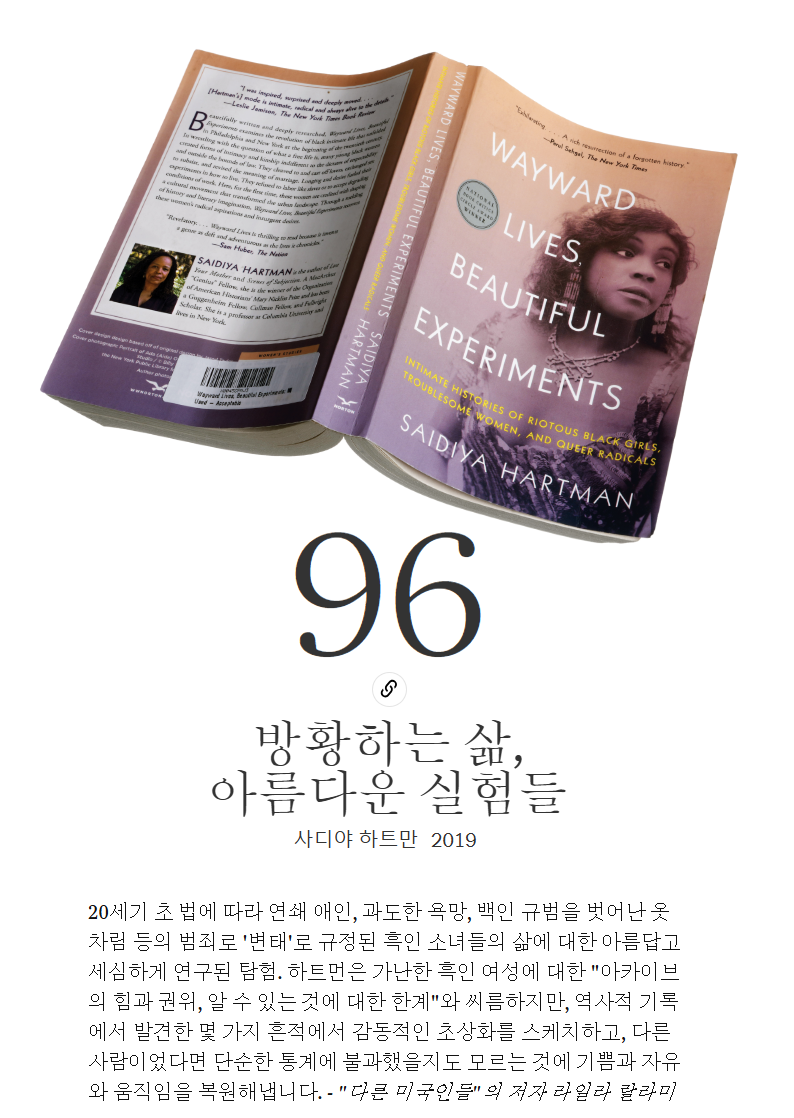 "Wayward Lives, Beautiful Experiments"는 사이디야 하트먼의 혁신적이고 감동적인 역사 논픽션 책으로, 19세기 말과 20세기 초 흑인 여성들의 삶을 생생하게 재현하며, 그들의 투쟁과 꿈을 조명합니다. 하트먼은 문학적이고 시적인 언어로 소외된 목소리를 복원하며, 독자들에게 강한 인상을 남깁니다. 이 책은 역사적 인물들을 인간적으로 느끼게 하고, 현대 사회의 구조적 문제에 대한 깊이 있는 통찰을 제공합니다.