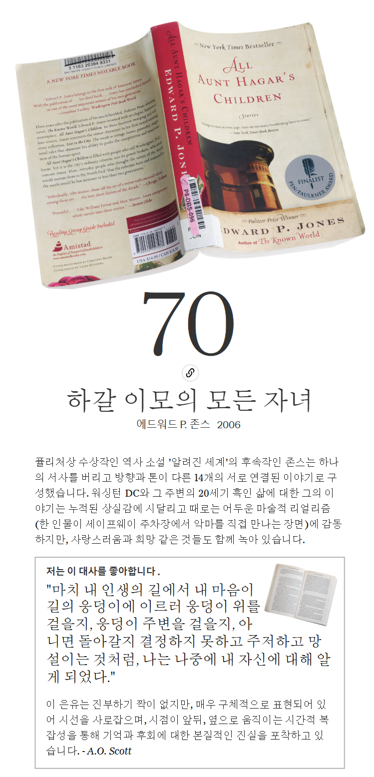 이번 주(오늘부터 80~61일)에 걸쳐 이 목록을 공개하면서 꼭 읽어보고 싶었던 책을 발견하거나, 다시 읽고 싶은 명작을 만나게 되기를 바랍니다. 무엇보다도 여기에 소개된 다양한 주제, 목소리, 의견, 경험, 상상력에서 여러분도 저희만큼이나 많은 영감을 얻고 눈부시게 빛나시길 바랍니다.
