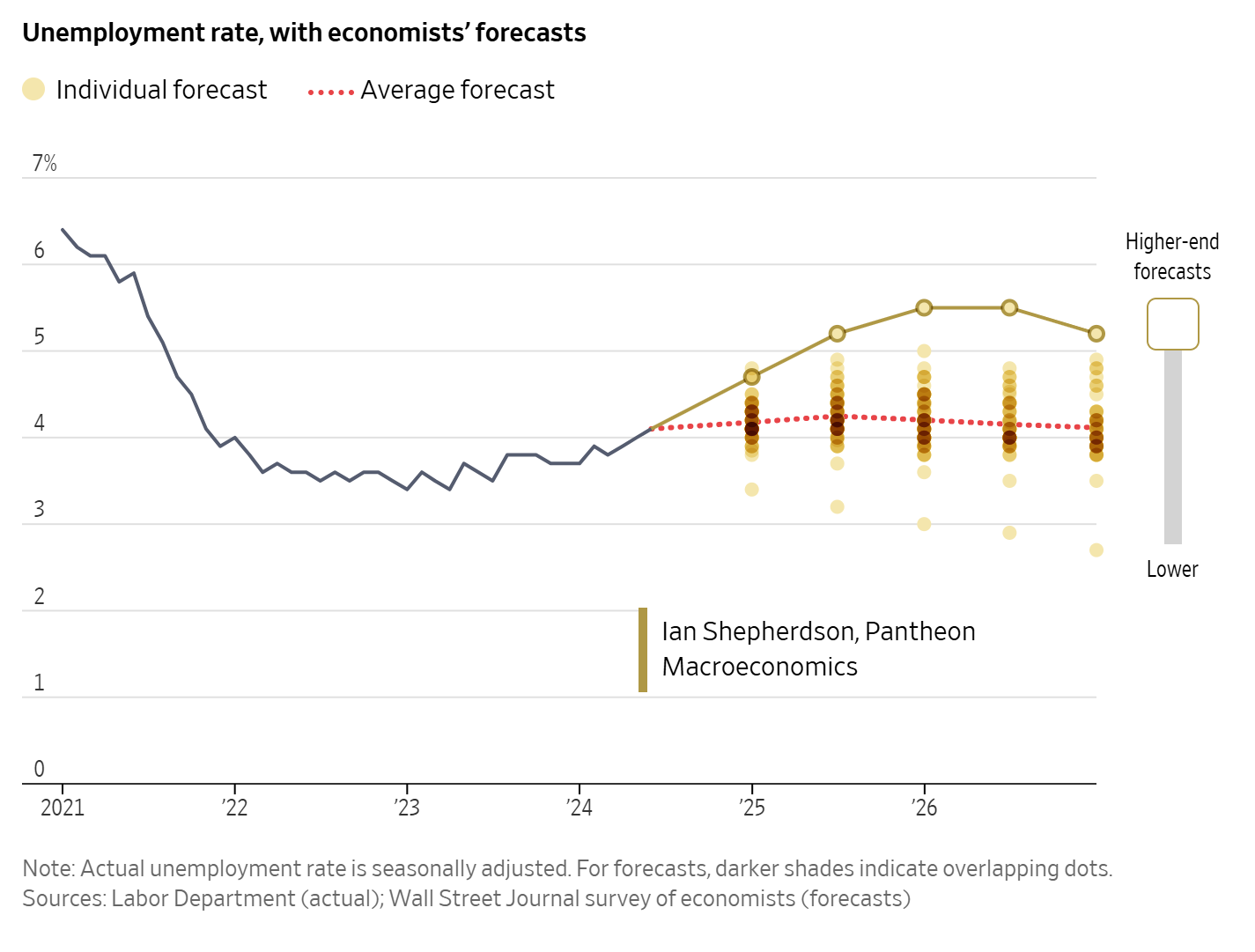 7. 더 높은 수준의 예측: 판테온 거시경제학의 이안 셰퍼드슨이 2026년까지 실업률이 5% 이상으로 상승할 것이라는 비관적인 전망을 내놓은 것이 주목받고 있습니다.