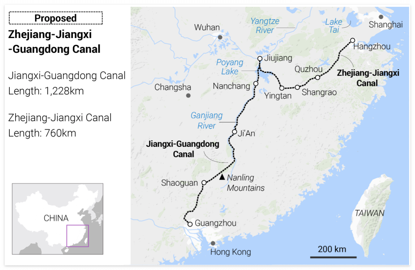 저장-장시-광동 대운하는 장강과 주강을 연결하는 것을 목표로 하는 중국의 중요한 인프라 프로젝트입니다. 핵심 사항은 다음과 같습니다:
