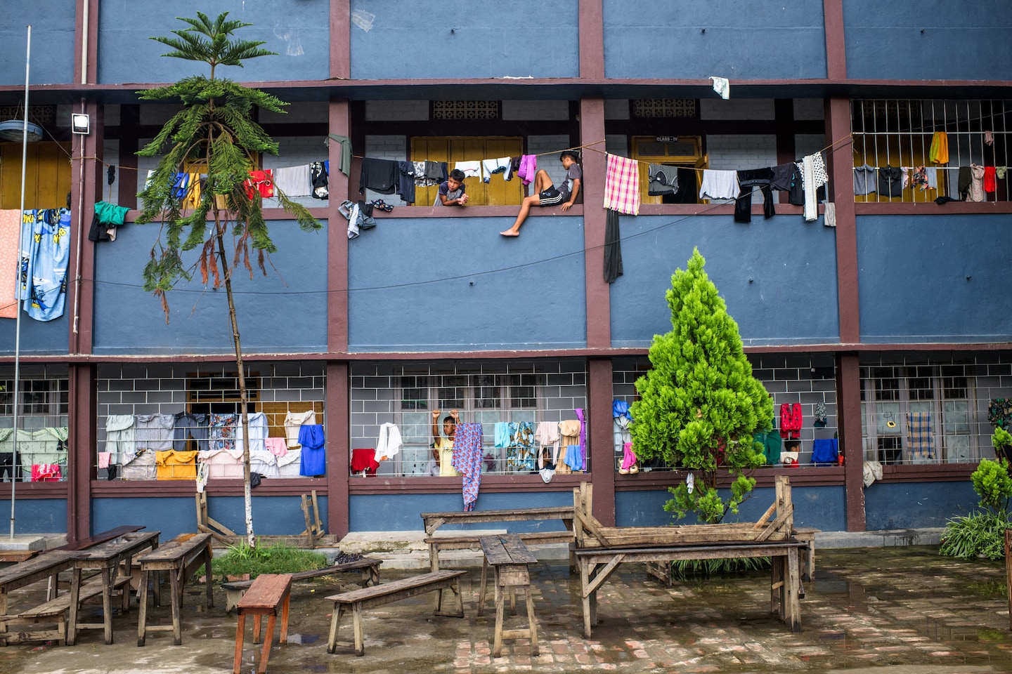 추라찬드푸르에 있는 로스타드 메모리얼 고등학교 구호 캠프에는 계속되는 전투로 피난 온 쿠키족이 거주하고 있습니다. (워싱턴 포스트의 아르코 다토)